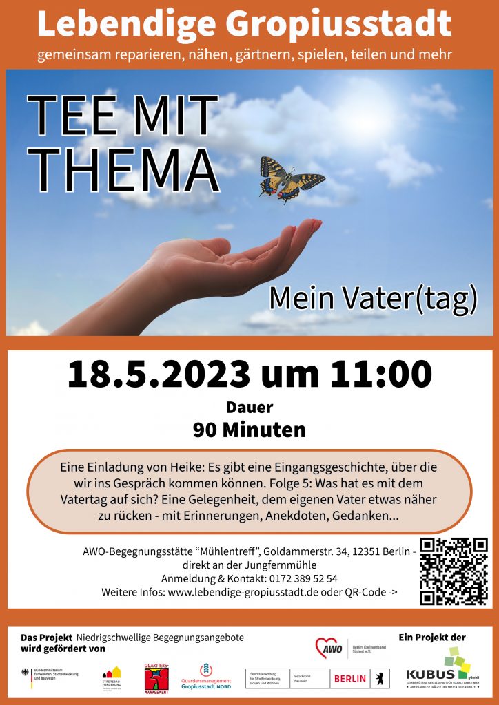 Tee mit Thema Veröffentlicht 25. April 2023 Mathias Kalender Wann: 18. Mai 2023 um 11:00 – 12:30 2023-05-18T11:00:00+02:00 2023-05-18T12:30:00+02:00 Wo: AWO-Mühlentreff Gesprächsrunden