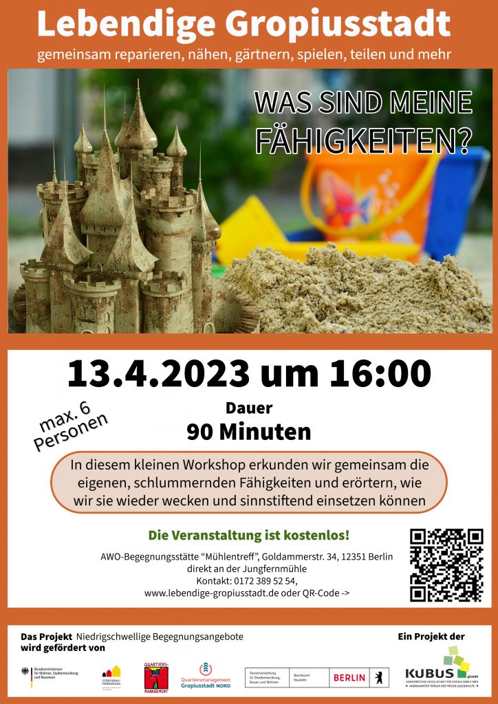 Was sind meine Fähigkeiten? Veröffentlicht 25. März 2023 Mathias Kalender Wann: 13. April 2023 um 16:00 – 17:30 2023-04-13T16:00:00+02:00 2023-04-13T17:30:00+02:00 Wo: AWO-Mühlentreff Workshop
