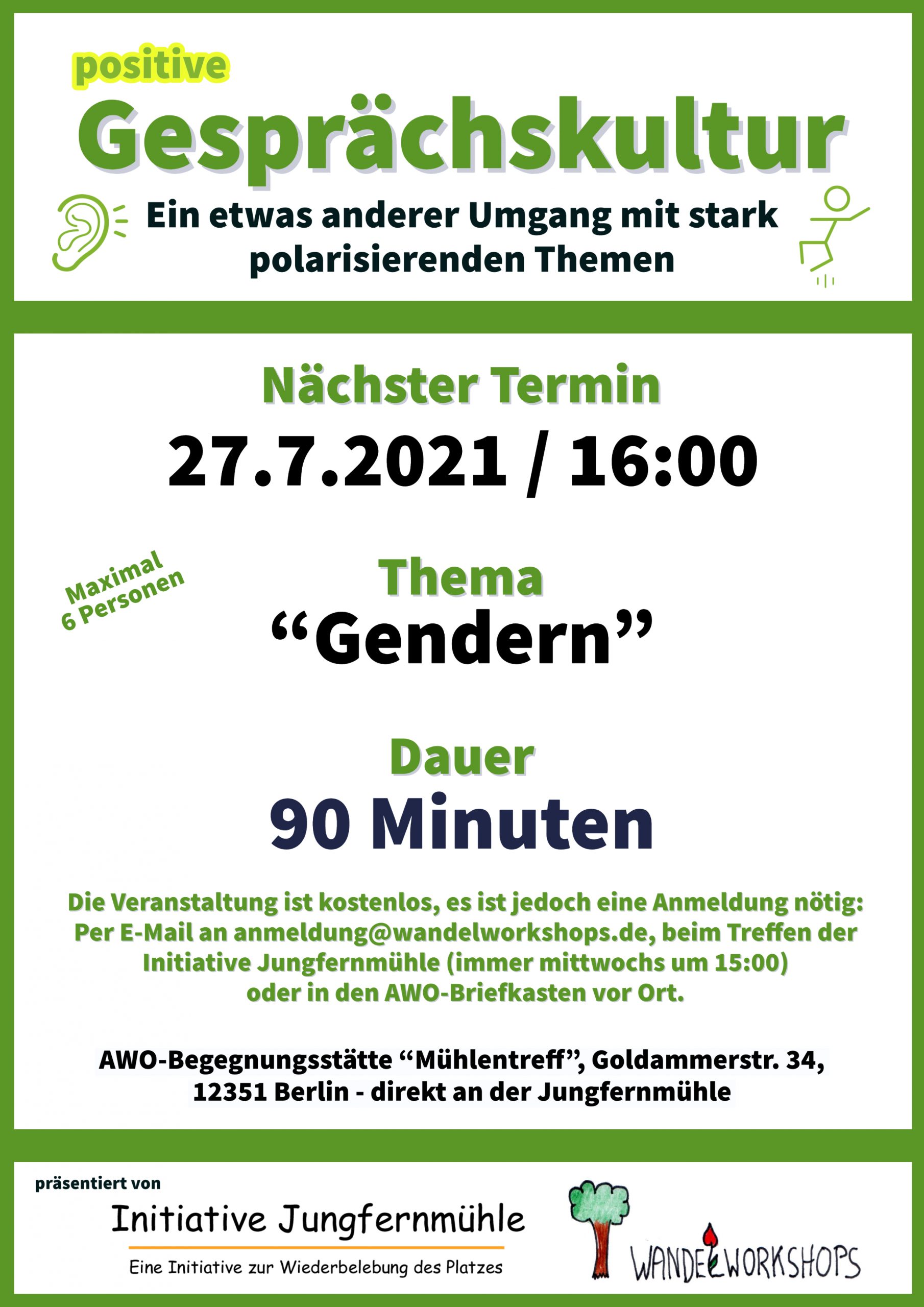 Positive Gesprächskultur – Ein etwas anderer Umgang mit stark polarisierenden Themen. Jetzt monatlich in der AWO Begegnungsstätte „Mühlentreff“.